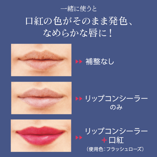 唇用に特化した処方で、単に色を隠すだけではなく、唇にやさしくフィットして、どんな口紅も見たまま発色。色持ちもアップ!