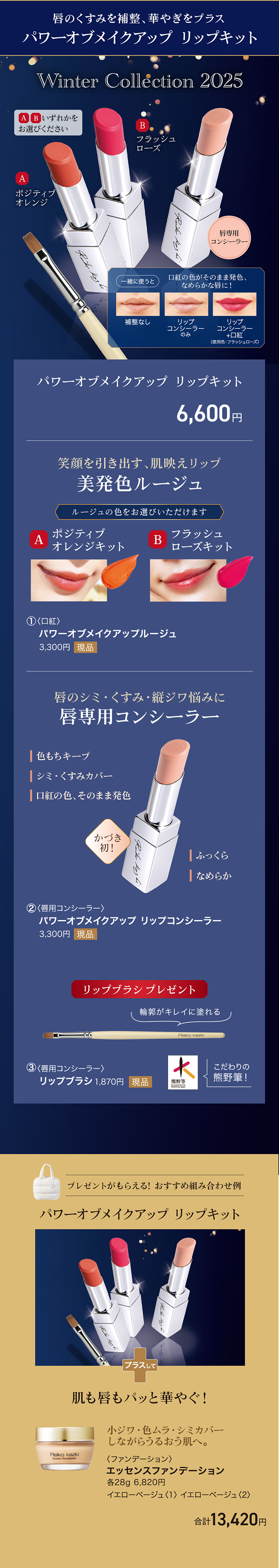 - パワーオブメイクアップ ルージュ: 全2色、パワーオブメイクアップ リップコンシーラー、リップブラシ: いたち毛(ブラシ部分)/16cm
