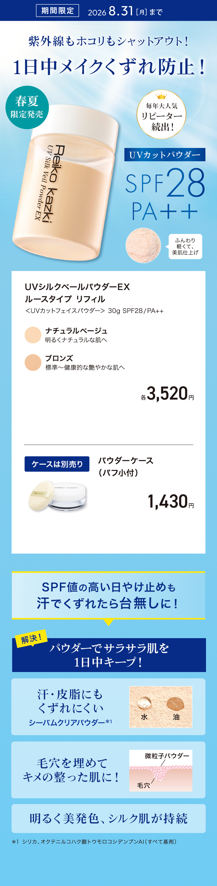 UVシルクベールパウダーEX ルースタイプ リフィル パウダーケース(パフ小付)