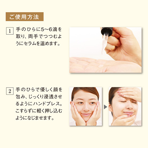 手のひらでじっくり浸透させるようになじませることで年齢肌の悩みをケア。